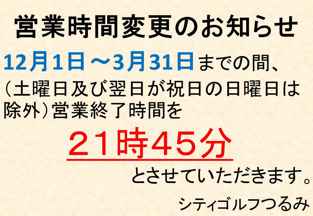 2025年12月1日~2026年3月31日 営業時間変更のお知らせ