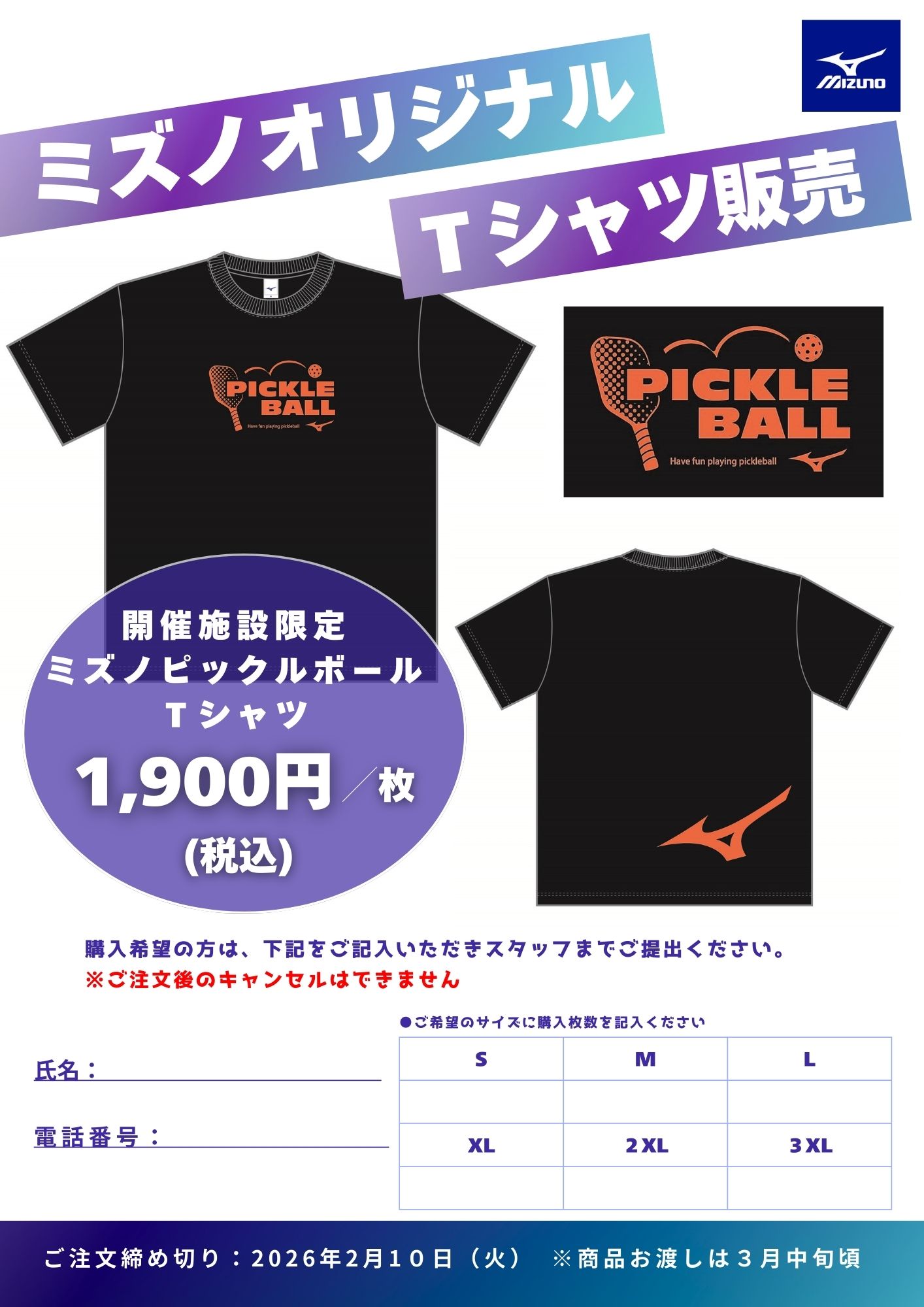 ミズノが運営する公共施設や直営施設のみで【ピックルボールTシャツ】が販売することが決まりました!