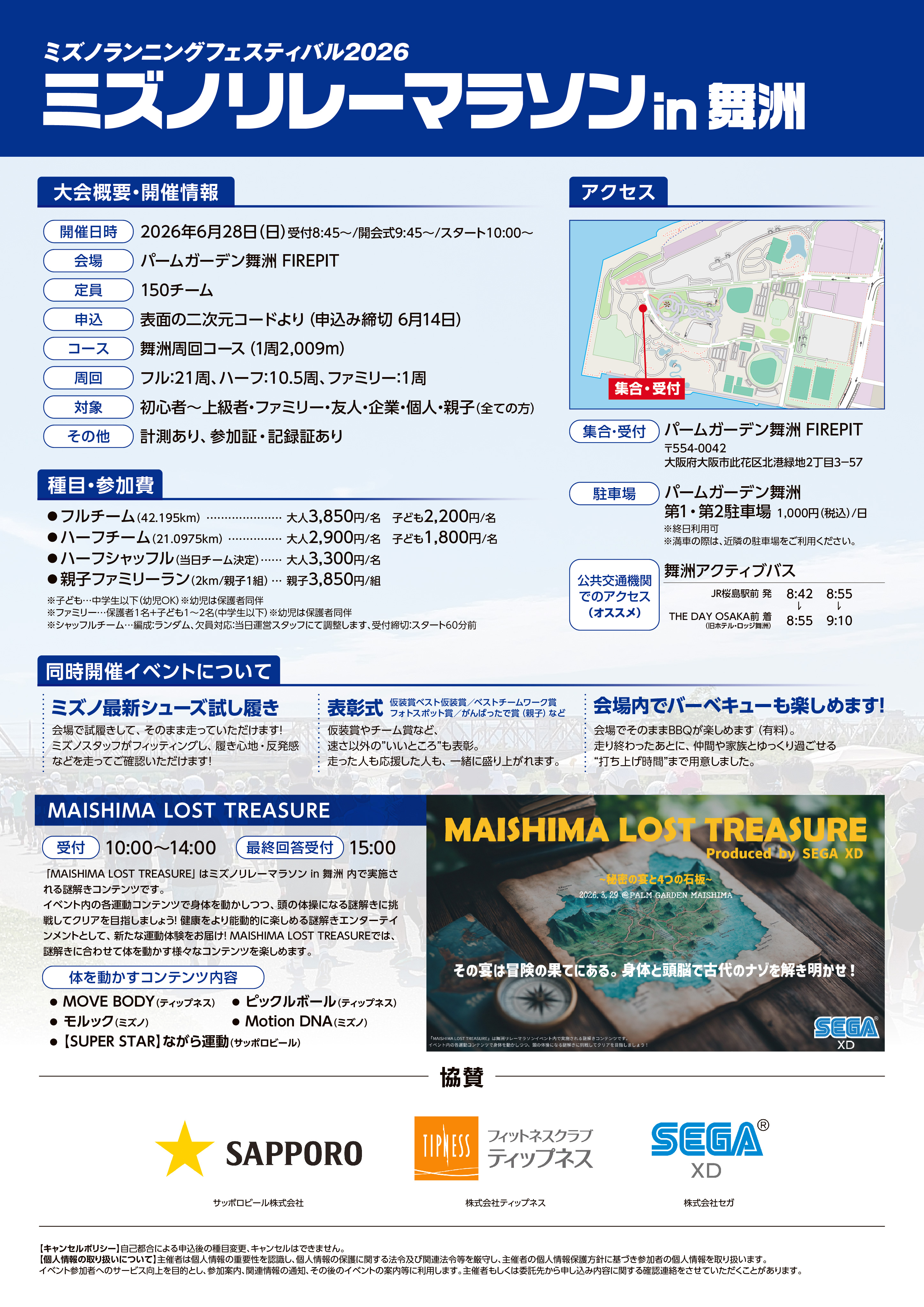 【参加者募集中!】6/28(日)開催!ミズノランニングフェスティバル2026 🏃♂️ミズノリレーマラソン in 舞洲